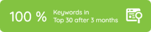 Within 2 months we had 75% of the target keywords in the Top 30 and 2 weeks later all keywords were ranking. The % of top 10 results reached over 50% in the same timeframe and by end of Feb we have 90-100% ranking on the first page, just 4 months from the start of the campaign.