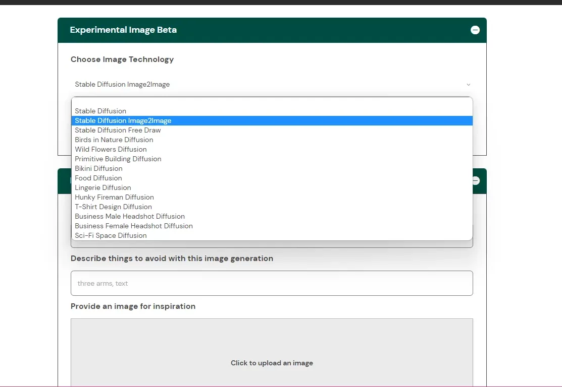 Stable Diffusion also allows you to choose from various image technologies and diffusion models: